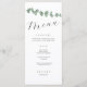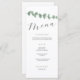 This minimalist elegant wedding menu design features a simple eucalyptus branch finished with classic calligraphy typography. A classic wedding menu design to dress your tables beautifully and match your wedding theme throughout your wedding decor ideas.
