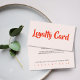 Minimalist fully customizable loyalty card template for beauty or fashion salon. Elegant design with texture light pink background anf bold red fonts. Perfect marketing tool to reward your best customers.