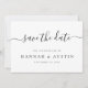 Minimalist Black and White Elegant Wedding Save the Date. Personalize script typography with your details.