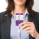 Minimalist Employee Photo ID Name Logo Purple. A fully customisable photo ID badge which is easy to personalise with your photo, logo and text. Swap in your photo (of landscape orientation) with the sample image, and company logo, and easily personalise the text to your own details. You can also add your return address on the back in case your card gets lost or delete this text if you so wish. The font styles and color can also be changed via the Customise Further option, as well as the background color.