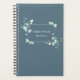 Stay organized in style with this personalized eucalyptus greenery planner. The design features soft watercolor eucalyptus leaves arranged around a delicate botanical frame on a calming dusty blue background. Your custom name and title appears in the center for a clean and elegant look.