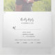 This minimalist faded photo wedding tri-fold invitation is perfect for a simple wedding. The modern romantic design features classic black typography paired with a rustic yet elegant calligraphy with vintage hand lettered style. Personalize with two engagement photos. Your entire wedding suite all in one! This folded invitation includes your wedding invitation, details, an engagement photo, and a self addressed RSVP card that your guests cut off and mail back to you. Personalize the front cover with your names and wedding date.