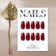 Minimalist black and white false nails display cards with care & application guide on the back, featuring a simple design with space for your brand name or logo. The care instructions include step-by-step icons on how to apply faux nails, This acrylic nails packaging card is editable, allowing you to customize all text, colors and layout! Great to display your stick on nails as well as include application and removal instructions.