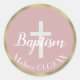 Minimalist Faux Gold Baptism Cross Child's Name Classic Round Sticker