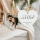 Personalized wedding Christmas ornament with custom text and photo is a timeless keepsake for couples celebrating their first holiday season as newlyweds. The elegant heart-shaped ornament features the phrase “Our First Christmas Married” in a stylish mix of script and typewriter-inspired fonts, with space for personalized names and the year to create a meaningful memento. The minimalist black lettering on a clean white background gives it a classic, versatile look that suits any holiday décor. On the back, you can add a favorite wedding or couple photo, making this ornament even more personal and unique. Perfect as a thoughtful wedding gift, Christmas present for newly married couples, or a sentimental keepsake for your own tree, this ornament beautifully commemorates the joy of beginning a new chapter together. Designed to capture love and tradition, this personalized photo ornament is a heartfelt way to celebrate your first Christmas as husband and wife, turning cherished memories into a treasured holiday decoration for years to come.