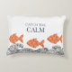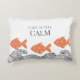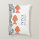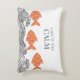 Catch the Calm, Fish and Waves throw pillow. The fish are rendered in a soft terracotta orange and decorated with a delicate floral pattern, adding a whimsical, Japanese-inspired touch. The waves below are illustrated with fine black lines in a traditional woodblock style.