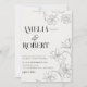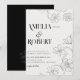 Plain white envelopes are included with paper invitations and will come to fit the invitation size you select. If you don’t need the envelopes, you may choose to not receive them by selecting the dropdown below "Envelopes" and choosing "None." If you’d like to have a design on your envelopes, you can browse all of these available envelopes to find the design that complements your Minimalist Floral Black And White Wedding Invitation.
