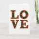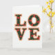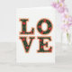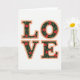 This card features the word “LOVE” as the main focus, set on a plain white background. Each uppercase letter is filled with dense green leaves in deep emerald and forest tones, packed closely to create a textured look. Tucked among the leaves are small red flowers with five petals and bright yellow centers, adding little pops of color that feel sweet and romantic ❤️. A soft peach outline traces around each letter, helping the word stand out and giving the design a gentle, cozy finish. The “LOVE” text sits centered on the front, and the letters look like strong, simple capitals rather than fancy writing. It feels meaningful to give because it says what you want to say right away, while the flowers and greenery add warmth and care behind the message 🥰.