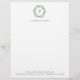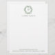 This elegant letterhead features a wreath of abundant watercolor green leaves and a few tiny berries, with your initial in the center, on a clean white background. There is a spot for your name or company name on the top, and your address or social media info goes onto the bottom.