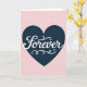 This card shows a large navy blue heart centered on a soft pastel pink background. Inside the heart, the word “Forever” appears in white, flowing cursive-style lettering, placed right in the middle. The letters have gentle curves, with a longer sweep under the word and a curled start to the “F,” which makes it feel tender and romantic. A faint shadow behind the white letters gives the word a slight raised look against the dark heart. The simple color contrast keeps your focus on the message and makes it feel steady and sincere. It’s a meaningful choice for someone you love or a close friend because it says you’re in it for the long haul without needing a lot of extra words 🥰. Whether you’re marking a new relationship or honoring one that’s lasted, it carries a calm promise ❤️.