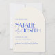 The matter paper is our sample of choice -- it's a reasonably priced, good quality, nice feeling paper stock. We were a little concerned the muted rustic blues might not reproduce all that well (usually by light colored samples), but they're just gorgeous! The white lettering is perfect in combination with the blue background, and the typography is all easy to read.