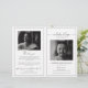 Funeral memorial program featuring on the front a photo of the deceased, thier name, dates, the memorial venue, date of the event, and elegant frame. On the inside is an obituary, and order of service; and on the back another photo, a thank you note and the second venue for after the funeral.