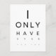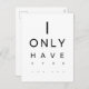 The postcard features a clever and minimalist typographic design, perfect for Valentine's Day with a touch of humor and wit. The phrase "I ONLY HAVE EYES FOR YOU" is laid out in bold, black, sans-serif font against a stark white background. The design plays on the arrangement of the letters, with the word "ONLY" directly above the word "HAVE," and the letters "E Y E S" spread out beneath to draw attention to the pun. The words "FOR YOU" are subtly placed at the bottom, maintaining the clean and modern aesthetic. This design is ideal for those who appreciate a straightforward, yet creative way to express their affection with a bit of playful charm. It's a contemporary and stylish choice for anyone looking to send a love note that's both romantic and lighthearted.