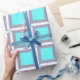 Minimalist geometric pattern with turquoise squares. Simple and elegant design for packing your special gift