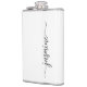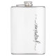 Girly Minimalist Simple Black And White Monogram Name Signature Script Custom Personalized Flask. These design featuring your first name in a pretty hand lettered style swash tail font signature typography black script on white color background. These are easy to customize it. Great stylish feminine bachelorette party gift, housewarming gift, also for Bachelorette Party, birthday, mother’s day, wedding, sweet 16 birthday party, bridal shower party, for graduation party and It’s for the girl who loves unique stylish things.