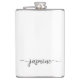 Girly Minimalist Simple Black And White Monogram Name Signature Script Custom Personalized Flask. These design featuring your first name in a pretty hand lettered style swash tail font signature typography black script on white color background. These are easy to customize it. Great stylish feminine bachelorette party gift, housewarming gift, also for Bachelorette Party, birthday, mother’s day, wedding, sweet 16 birthday party, bridal shower party, for graduation party and It’s for the girl who loves unique stylish things.