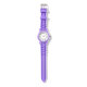 I only have one complaint. I ordered the watch with clear case and strap, and what was sent was white case and strap. I'm going to keep it because 1) it looks very nice in white, and 2) it would take too long to get a replacement made and sent in time for my occasion. Aside from the mix up with the color, the watch does look very good in white. The purple dial is actually sparkly which did not show in the online images. That was a nice surprise. If you like Swatch watches this is very similar to those. It's 33.6mm in diameter, 10.5mm thick, and 40.6mm lug to lug. Stainless steel case back says 3ATM/30m WR, so no swimming or showering or submerging this one. If you like Woodstock, this is a great choice.