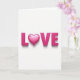 This greeting card centers on the word “LOVE” in large, 3D-style letters, with a heart shape taking the place of the “O.” The letters are a bright fuchsia pink, and they sit on a plain white background that makes the color stand out. The heart looks glossy, almost like smooth candy, with small light reflections on the surface. Soft shadows fall behind each letter and the heart, giving the design a gentle sense of depth. Inside the bigger heart, there’s a smaller heart tucked into the upper curve, like a sweet little reminder of closeness. There isn’t any other text on the card, so “LOVE” is the whole message, centered and easy to read. It feels meaningful to give because it says what you feel without overexplaining, whether it’s for a partner or a close friend 🥰❤️. Hope it helps you share your Valentine’s Day sentiments.