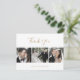 This minimalist gold 3 photo template thank you card is perfect for a simple wedding. The modern romantic design features classic gold and white typography paired with a rustic yet elegant calligraphy with vintage hand lettered style. Customizable in any color. Keep the design simple and elegant, as is, or personalize it by adding your own graphics and artwork. Personalize the back of the card with your names, and a thank you message. Alternatively, leave the thank you message template section blank to hand write a personalized note on each card after they arrive. These cards can be used for a wedding, bridal shower, or any special event.