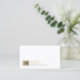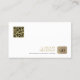 Whimsical, minimalistic, and clean design, independent investment adviser business card design. Gold square with a custom monogram in black and customizable typography in gold and black on a white background. QR code for additional information.