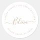 Minimalist Gold Believe Holiday Circular Address Classic Round Sticker