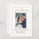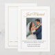 Share your joyous news with friends and family using this elegant wedding announcement card. Featuring a timeless double gold border and sophisticated gold script, it is perfect for elopements or sharing news of an intimate ceremony. Fully customizable, you can easily replace the photo and personalize the names, date, and location to reflect your special day.