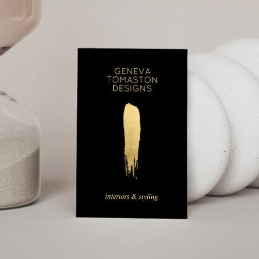 A single faux gold brushstroke speaks for itself on this designer business card template. Your name or business name is elegantly styled above it in a slim, minimal typeface for a chic aesthetic. This double-sided card design allows ample room on the backside for your contact info - letting your brand take the spotlight on the front of the card. Created for interior designers, stylists, fashion boutiques, creatives and artists. Original art and design © 1201AM Design Studio | www.1201am.com