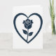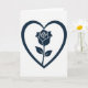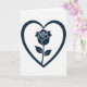 This card shows a deep indigo rose drawn with simple lines, standing upright in the middle of the design. The stem is slim and curved, with two small leaves, and the flower has tight spiral lines that suggest petals opening. Around the rose is a large heart outline in the same indigo color, neatly framing it. The background is plain white, so the blue lines stand out clearly and feel calm and focused. There’s no shading or extra texture, which keeps your attention on the rose and heart as a quiet sign of love ❤️. There isn’t any text on the front, so the picture does all the talking and leaves room for your own words inside 🥰. It feels meaningful to give because it’s simple, steady, and says “I care about you” without trying too hard. Share it to pass along your Valentine’s Day feelings in a kind, honest way.
