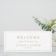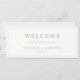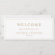 This minimalist gold font hanging seating chart welcome header is perfect for a simple wedding. The modern romantic design features classic gold and white typography. Customizable in any color. Keep the design simple and elegant, as is, or personalize it by adding your own graphics and artwork. The card prints on the front and back (double-sided). Please check the collection for the coordinating table number seating chart cards.