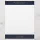 Professional letterhead featuring personalized monogram name in minimalist gold color typography on a navy blue background.