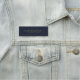 Professional name tag featuring personalized monogram name in minimalist gold color typography on a navy blue background.