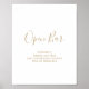 This minimalist gold open bar sign is perfect for a simple wedding. The modern romantic design features classic gold and white typography paired with a rustic yet elegant calligraphy with vintage hand lettered style. Customizable in any color. Keep the design simple and elegant, as is, or personalize it by adding your own graphics and artwork.