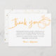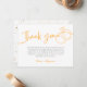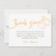 Minimalist thank you note card featuring hand-lettered swirly script calligraphy and printed gold wedding rings. Below the design, add your custom names. There's ample space in between for your personal handwritten message of gratitude.