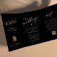 Minimalist gold script all in one black wedding Tri-Fold invitation