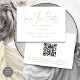 Minimalist Gold Script QR Code. Available digitally and printed. Simple elegance with Save The Date in a modern set script.The rest of the text you can easily personalise. Shown here in gold on white however the text and background colors can be changed if you wish via the customise further option.