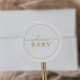 These minimalist gold welcome baby shower stickers are perfect for a simple baby shower. The modern romantic design features classic gold and white typography paired with a rustic yet elegant calligraphy with vintage hand lettered style. Customizable in any color. Keep the design simple and elegant, as is, or personalize it by adding your own graphics and artwork.