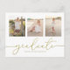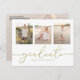This design features a simple graduation invitation template, a Four 4 picture elegant graduate announcement layout, with modern simple calligraphy, trendy script typography, great for high school or college vertical, a graduation grad party invite, a senior student minimal minimalist design, great congratulations celebration, with gold text and white background, and a fancy script font with a QR code for easy access to you party website or guest to view details online.