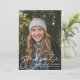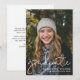 Modern Script Overlay Graduate Photo Announcement Card with room for additional details/information on the back. Back is white with black text.