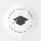 Modern and simple black and white graduation party balloon featuring an illustrated graduation cap icon and faux gold glitter speckles and curved type