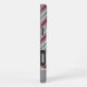 Classic red and white striped design on gray background is a minimalist background for this personalized case. Typography has a bit of flair for a quiet add of uniqueness.