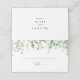 This minimalist green eucalyptus wedding place card is perfect for a modern wedding. The design features watercolor hand-drawn elegant botanical eucalyptus branches and leaves.