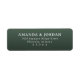This return address label features a clean, minimalist design with a dark green background and crisp white text. The layout is simple and centered, showcasing a modern sans-serif font that emphasizes clarity and elegance. Perfect for those who appreciate straightforward aesthetics, this label combines functionality with a professional touch, making it ideal for formal correspondence or special occasions where a polished presentation is desired.