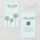Step into empowerment with this customizable business cards, meticulously crafted to reflect your journey as a life coach. Against a backdrop of serene mint, delicate dandelions sway gracefully, symbolizing growth and transformation. Tailored for life coaches, these cards exude a sense of tranquility and purpose, inviting clients to embark on their personal development journey. With customizable fields for contact information and services offered, as well as a customizable QR code linking to your online presence, these cards seamlessly blend elegance with modernity. Elevate your coaching practice with these refined and impactful business cards, embodying the essence of empowerment and renewal in every detail.