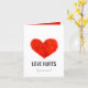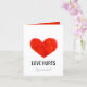A minimalist greeting card featuring a red torn heart on a clean white background, paired with a thoughtful and empowering message about love, healing, and growth.