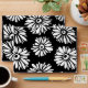 This black and white floral pattern features stylized daisy flowers. It is a girly, retro, groovy print with a strong boho aesthetic and clear 70's inspiration.