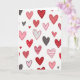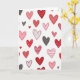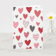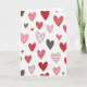 This greeting card shows a white background covered with many hand-drawn hearts scattered all over, so your eyes naturally move around the whole design. Most of the hearts are shades of red and pink, with a few charcoal gray ones mixed in for contrast. Some hearts are filled in solid, while others have polka dots, thin stripes, or little dash marks inside them. The outlines look slightly uneven, like they were drawn with a pen, which makes the card feel human and caring. There isn’t any text on the front, so the hearts do all the talking and leave room for your own words inside. It feels meaningful to give because it reminds someone that love and friendship can show up in many small ways, not just one big moment 🥰. Whether you’re giving it to a partner, a friend, or family, it’s an easy way to say “I’m thinking of you” ❤️.
