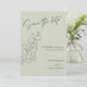 Minimalist handdrawn leaves green script wedding save the date