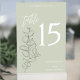 A simple and timeless table number featuring hand-drawn eucalyptus sprigs on a light sage green background. Elegant script and classic serif fonts combine to highlight the table number and includes aswell couple’s names and wedding date. Perfect for nature-inspired or minimalist weddings with a romantic touch. Same design on both back and front.