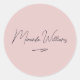 Minimalist Handwritten Script Name Blush Pink Classic Round Sticker