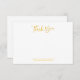 Minimalist wedding thank you note card featuring faux gold hand lettered typography text that simply says "thank you". Add your names at the by clicking the "Personalize" button.